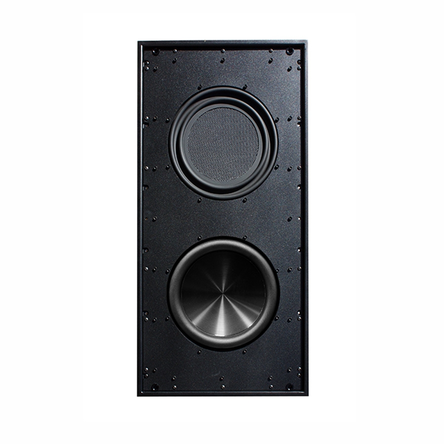 The QX1020 is just one option in James Loudspeaker’s series of in wall subwoofers. These unique subs are designed to offer smooth, deep bass to compliment any audio system while maintaining a discrete and space-saving design which doesn’t break the budget. The QX1020 is a compact QX style in-wall subwoofer, using the same mounting system as other QX style speakers. With a single 10” active woofer and a matching 10” passive radiator, this sub offers a great solution for smaller footprint subwoofers while still delivering booming bass. Designed for mounting behind displays, this sub is extremely versatile and easily hidden.
